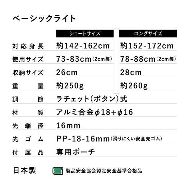 一方ベーシックライトは、2段目以下のシャフトを折りたたみまとめるとグリップの上部まで重なる設計です。そのため4つ折りタイプの物と同様の折り畳みサイズになっております。
