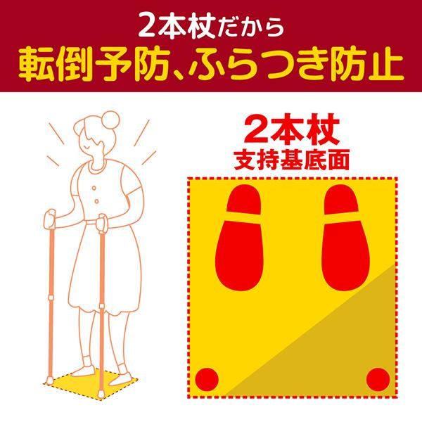 足元が不安な方の転倒予防に、安定歩行の日本製2本杖定番モデル。転倒を予防するだけでなく正しい姿勢での歩行をサポートします。