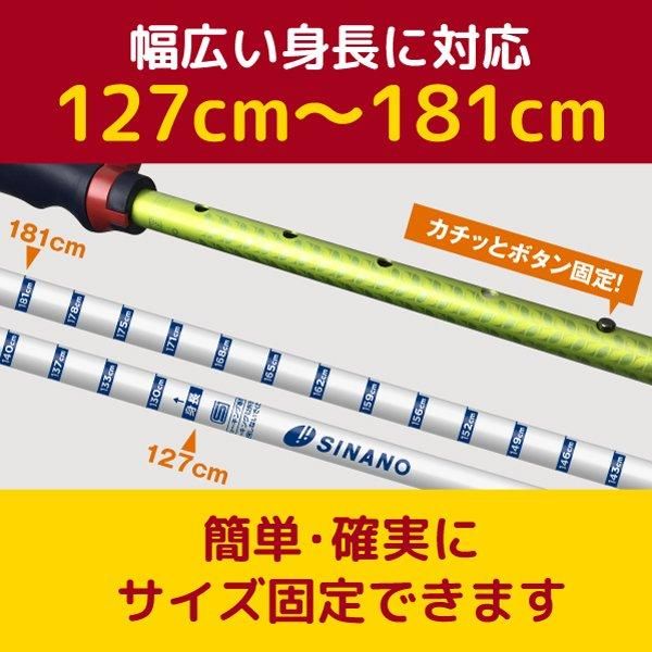 身長130cmから181cmの方まで幅広くお使い頂けるよう、18段階のサイズ調節機能が付いています。 サイズはボタンで固定されるので、使用中に縮んでしまうこともなく、握力の弱い方や高齢者でも、 簡単かつ確実にサイズを固定することができ安心です。