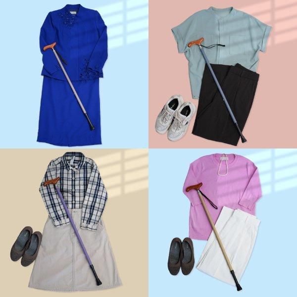 杖と洋服を同系色のワントーンに揃えたり、杖のカラーが際立つように補色にあたる洋服を選んでみたり、杖のある暮らしをもっと自由に、もっと楽しく、遊んでみるのも良いかもしれません。