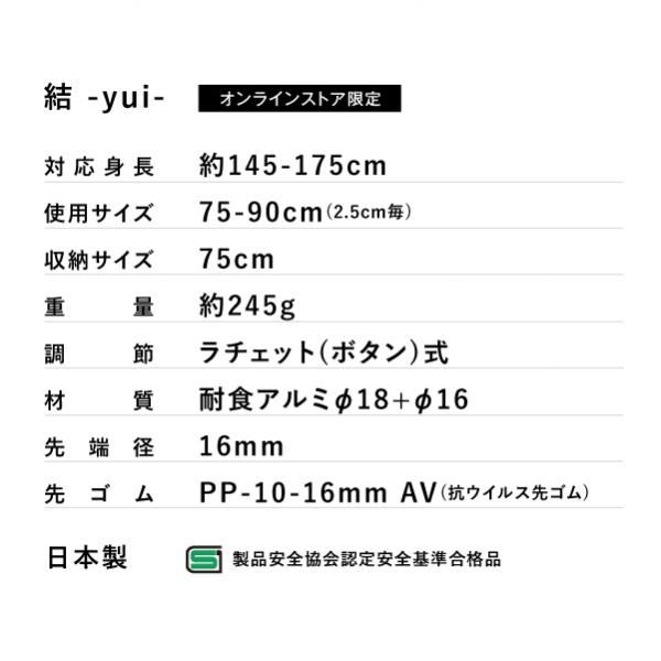 伸縮杖「結」は身長約145~175cmが適正ですが、杖の長さを当店でカット(切断)し短くすることも可能です。
