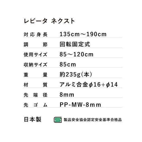 初心者の方にぴったりな基本のウォーキングポール「レビータ ネクスト」。「しっかり歩けるグリップ」と簡単なサイズ調節機能で、身長135~190cmまで対応。