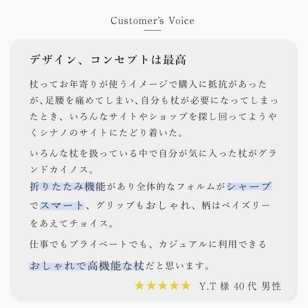 GRAND KAINOS(グランドカイノス)は、シナノが確かなポール技術で100余年にわたり培ってきた開発力を惜しみなく注ぎ、折り畳みステッキの最高峰ブランドとして誕生いたしました。