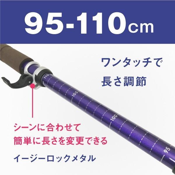 折りたたみ動作同様に、グローブをしたまま簡単にサイズ調節ができるから、シチュエーションにあわせてフレキシブルな対応が可能に。登りでは短めに、下りでは長めにセットして機動力を高めつつ、身体への負担も減らしていきましょう。