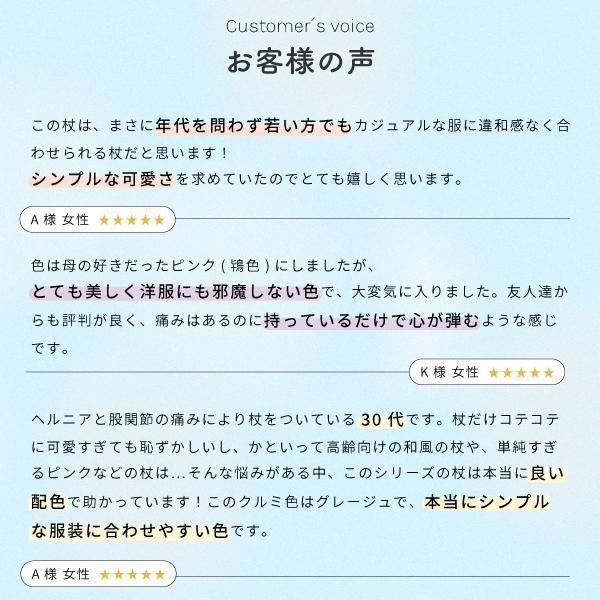 身長約145〜175cmの方にフィットする伸縮タイプのステッキなので、贈り物としても選びやすいアイテムです。お洒落が好きな大切な人をイメージして選ぶカラーなら、すでに杖をお持ちの方でもきっと喜ばれるはず。